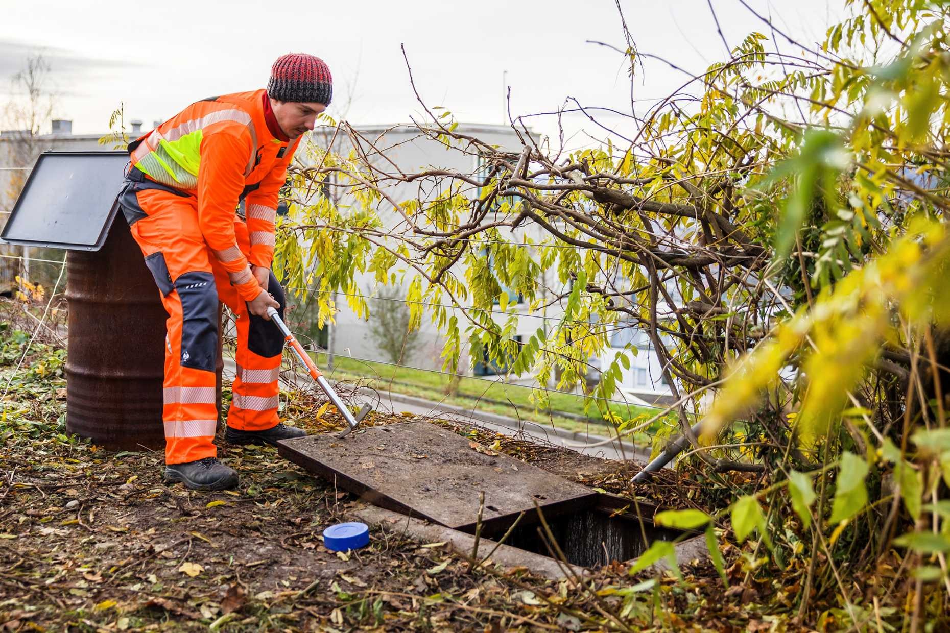 Lukas Bircher avec la sonde d'inspection Talpa. En noir, les deux éléments d'étanchéité, entre lesquels se trouve l'électrode. La nouvelle sonde permet de localiser les dommages causés par la corrosion sur les murs de soutènement.