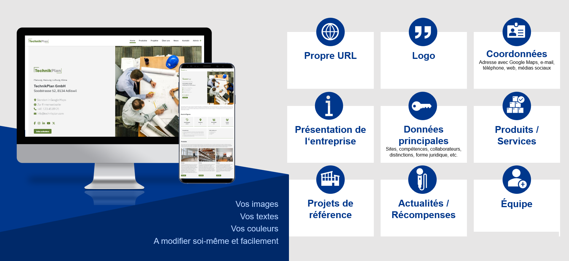 Votre propre site web d'entreprise – intégré à une plateforme performante
