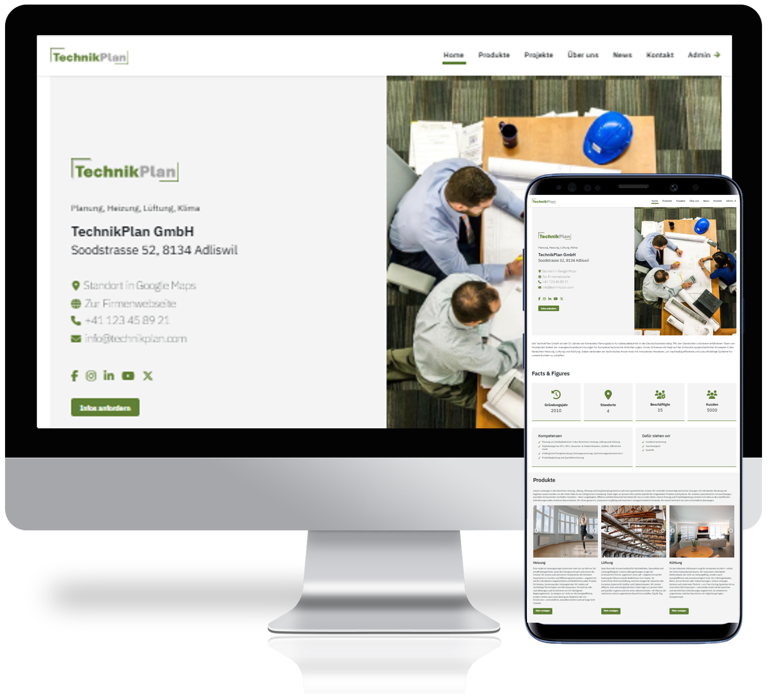 Bénéficiez d'un site web d'entreprise à part entière avec votre propre URL, visuellement et techniquement intégré à notre plateforme – powered by baublatt.ch ou powered by batimag.ch. Cela signifie que, Vos contenus bénéficient de la confiance et de la portée associées à nos marques.