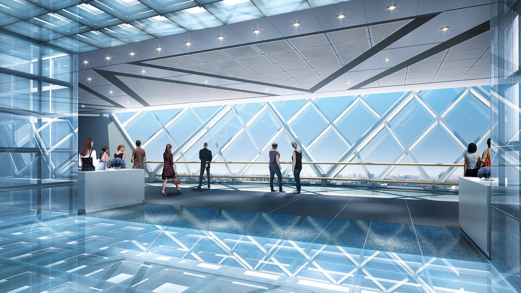 piscine, un restaurant ainsi qu'un sky-bar. La construction devait compter 128 étages
