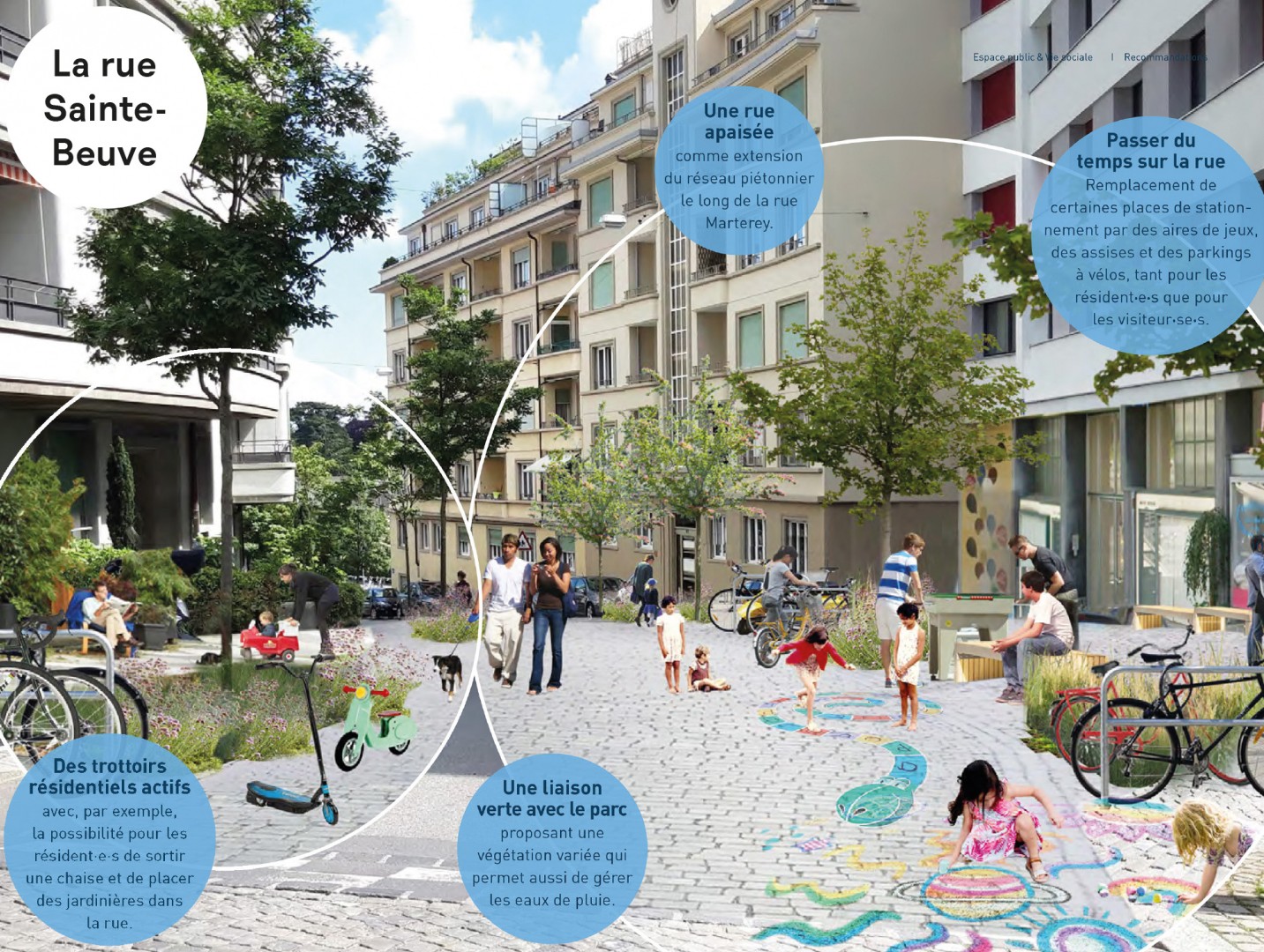 La réflexion de la Ville se déplace donc de la mobilité vers le confort des aménagements publics, dans différentes parties de Lausanne. Il s’agit d’offrir un cadre agréable aux piétons de tous âges et promouvoir des activités de rencontre. La promotion du patrimoine urbain est à ce prix.